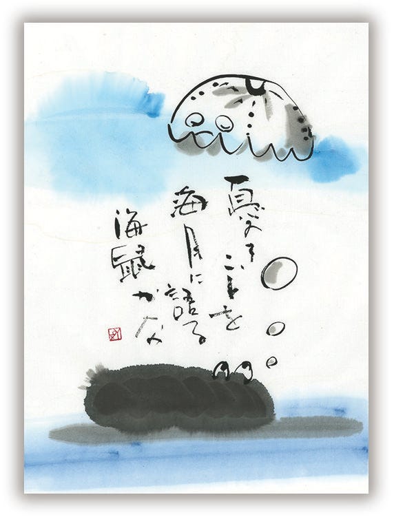 ukikoto wo kurage ni kataru namako kana —Shōha¡Ah, la holoturia!